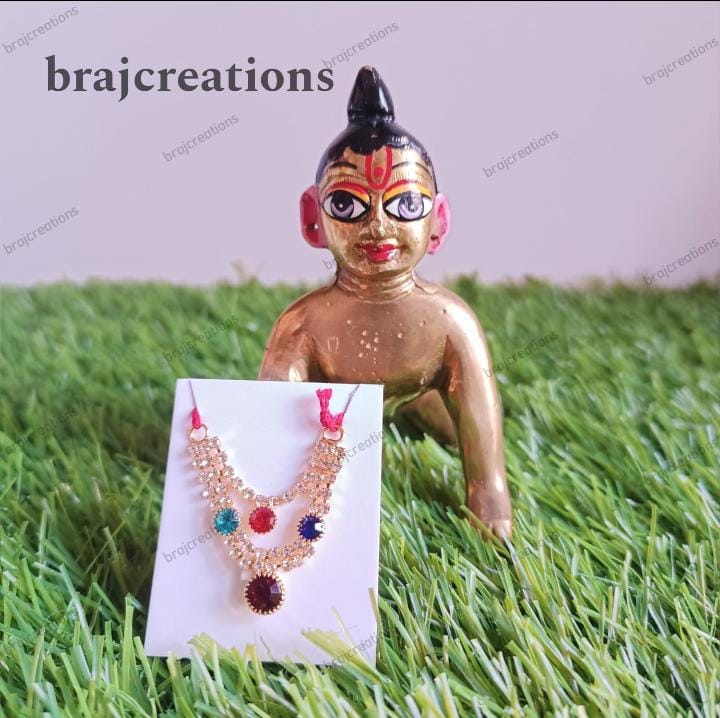Beautiful AD Mala for Laddu Gopal and other deity idols. Made with shiny American Diamonds, these malas add a touch of elegance and devotion. Available in different colors, perfect for matching outfits and festive looks. Suitable for all sizes (0–6) and ideal for daily use or gifting.
