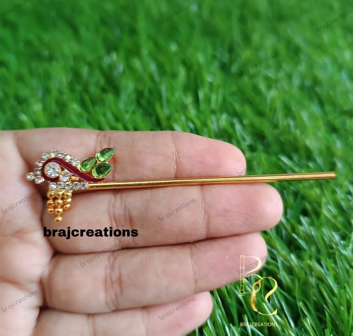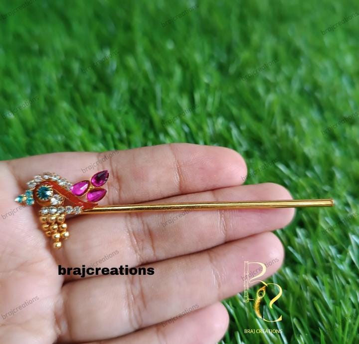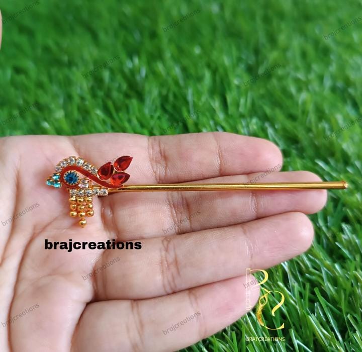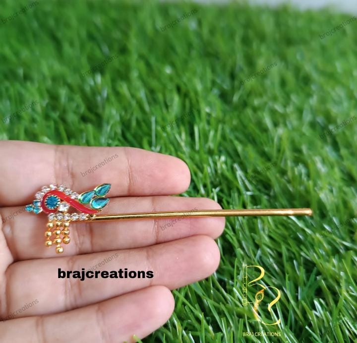 Beautiful designer bansuri available in vibrant colors like red, green, blue, and yellow — perfect for Laddu Gopal, Bal Krishna, and temple idols. Crafted with decorative beads, pearls. Ideal for pooja, Janmashtami, and festive shringar.