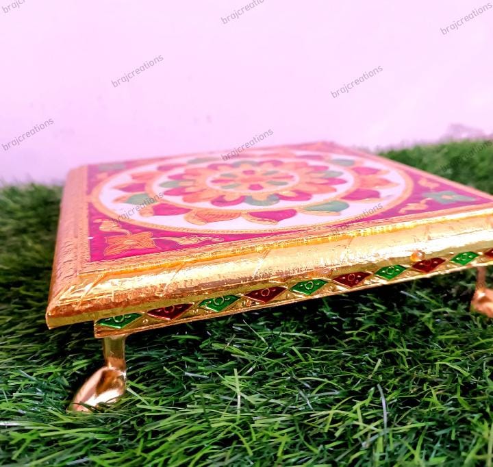 Elegant Designer Chaunki (7 x 7 inches) for Laddu Gopal and deity idols. Crafted with attractive designs and fine detailing, it adds a graceful and decorative touch to your mandir. Ideal for daily puja, festivals, or gifting.