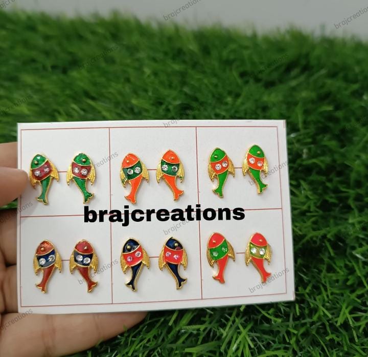 Traditional Makar Kundal earrings in 6 vibrant colors for Laddu Gopal idols. Ideal for pooja, festivals, and daily adornment. Lightweight and easy to wear.