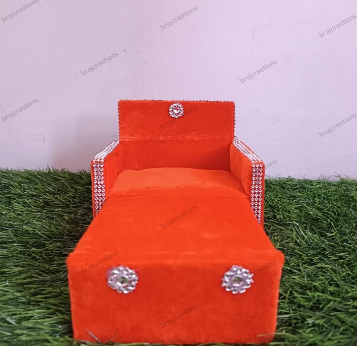 Multipurpose Sofa Cum Bed for Laddu Gopal and deity idols. Made with soft, high-quality fabric, it serves as a sofa with a gaddi size of 4 x 5 inches and unfolds into a bed with a gaddi size of 8 x 5 inches. Perfect for daily use, festive decoration, or gifting, it adds both comfort and style to your mandir.
